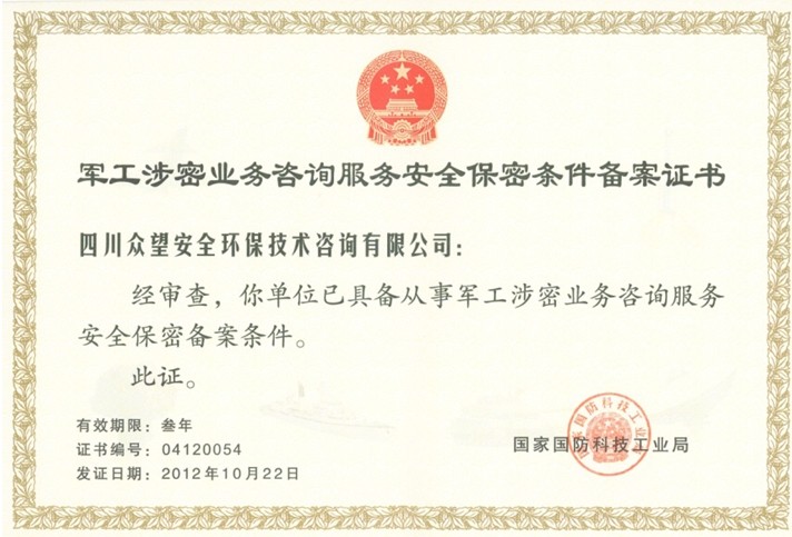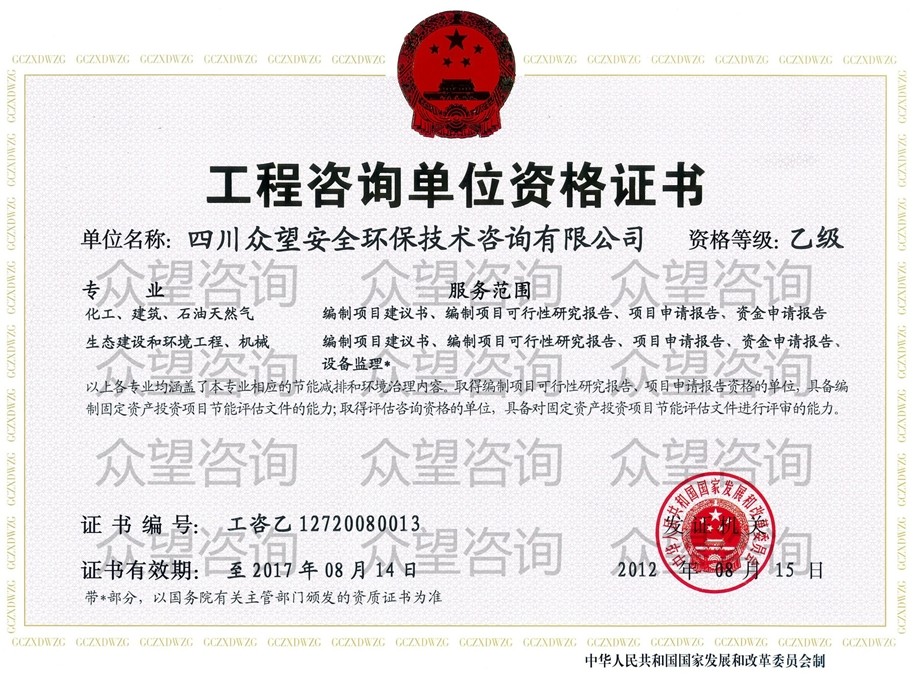• 眾望咨詢 四川眾望安全環保技術咨詢有限公司 ...<詳情>